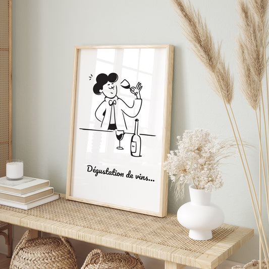 Affiche "Dégustation de vins..." - Déco Humour Œnologie | A6 · A3 · A4 · Digital