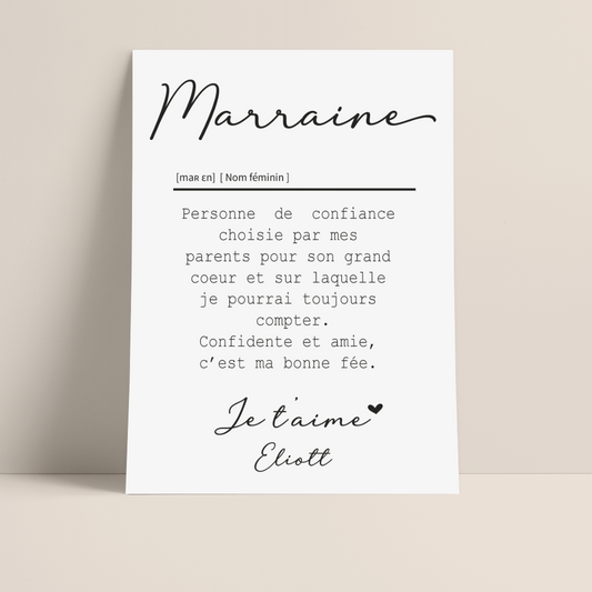 AFFICHE DEFINITION MARRAINE avec ou sans touche métallisée ( Rose Gold ou Doré )