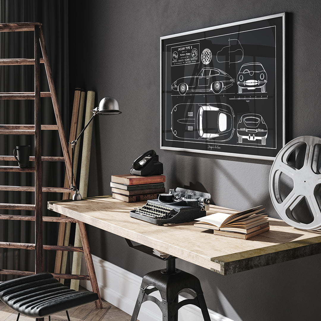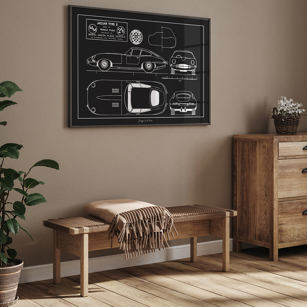 AFFICHE BLUEPRINT JAGUAR E-TYPE 1961
