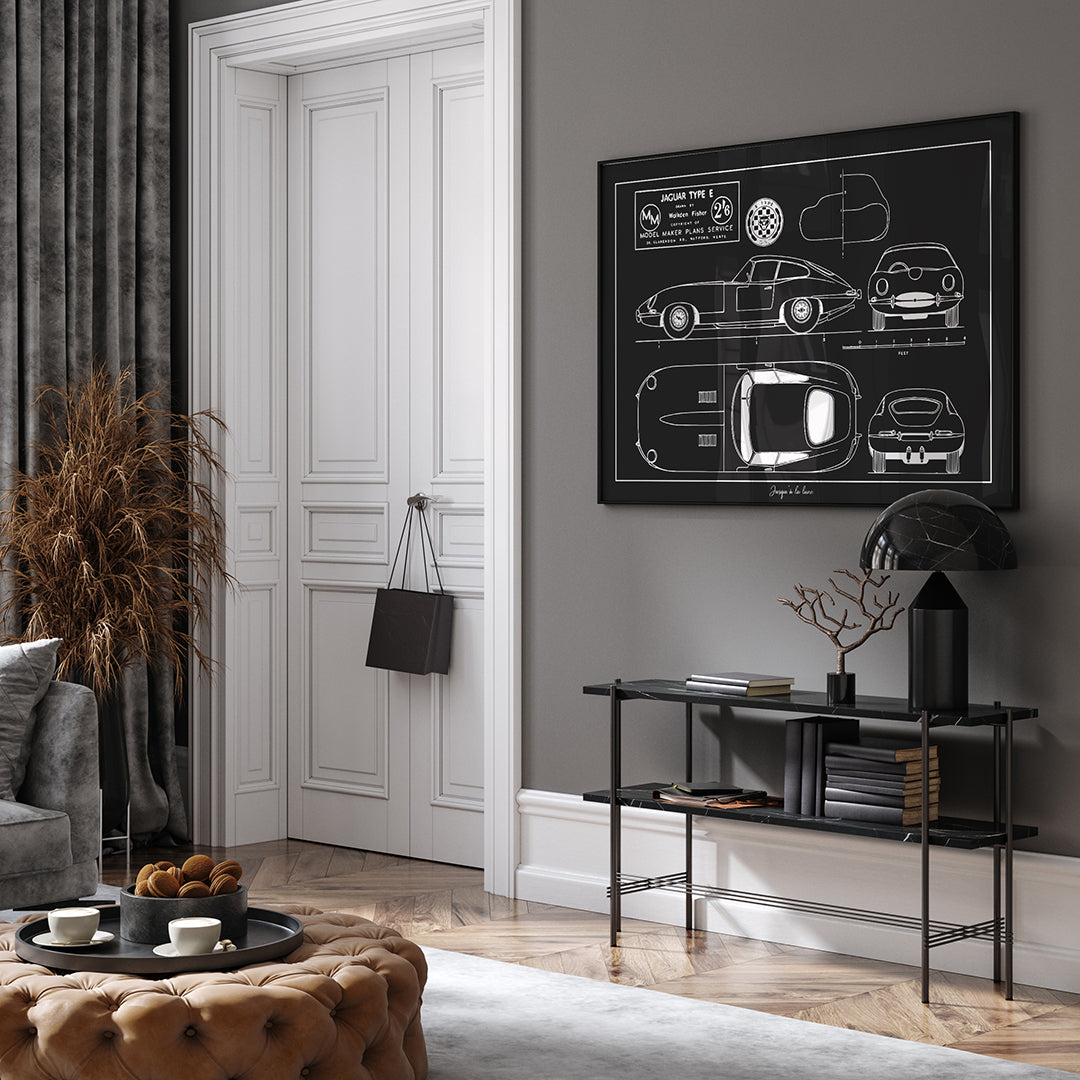 L'affiche Blueprint Jaguar E-Type 1961 capture l'essence même de cette voiture de légende, avec des détails précis et un design épuré qui met en valeur la beauté intemporelle de cette icône automobile. Imprimée sur du papier glossy 350g de haute qualité, cette œuvre d'art mural ajoutera une touche d'élégance et de sophistication à n'importe quel espace.