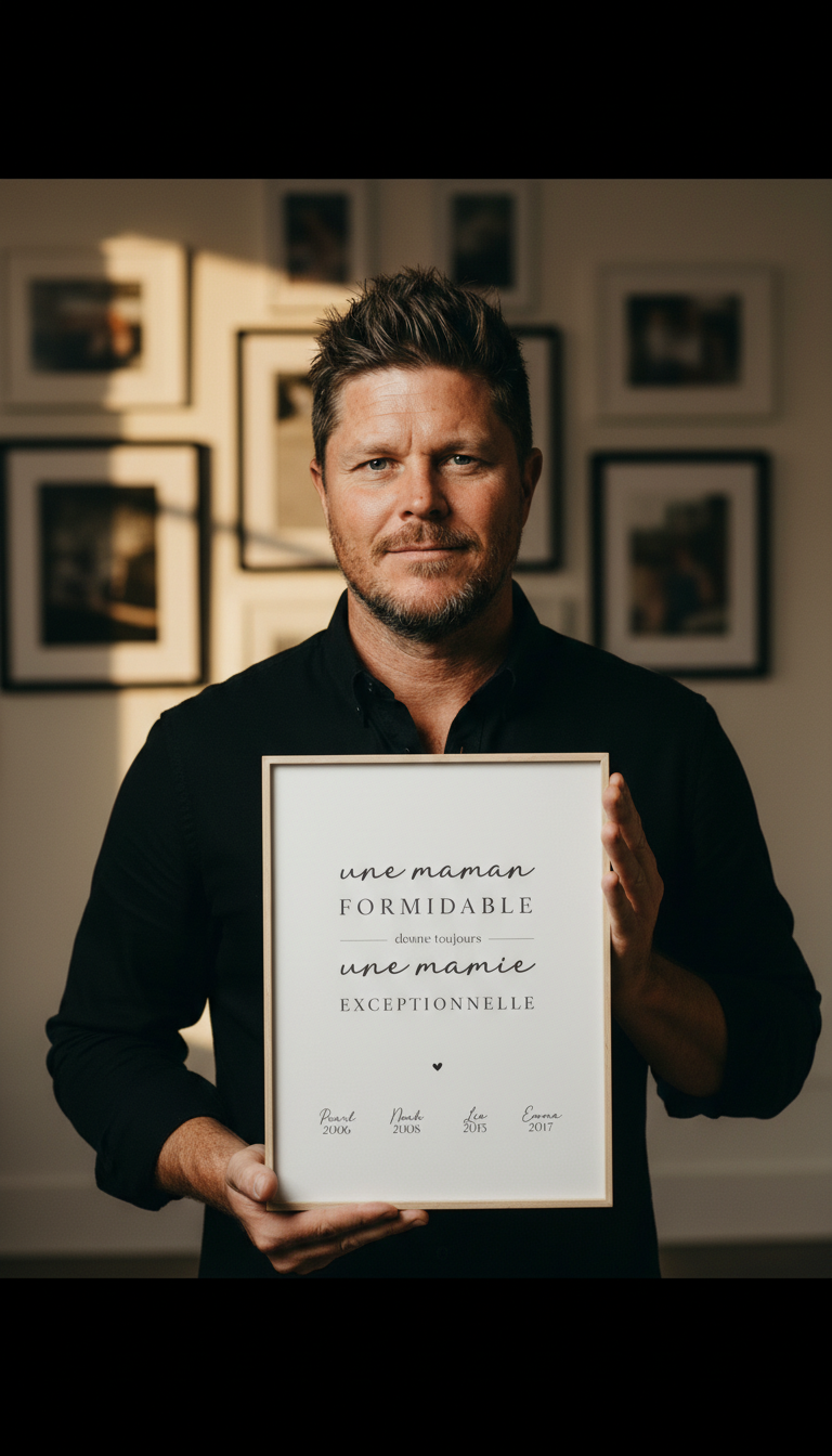 Badge “Personnalisable ✨” visible ➜ Ajoutez vos instructions (prénom, couleur, petit mot…) dans le champ « Commentaires » avant de valider le panier. Un aperçu peux vous être envoyé sur demande pour validation pour certaine affiche comme "Famille de dos".