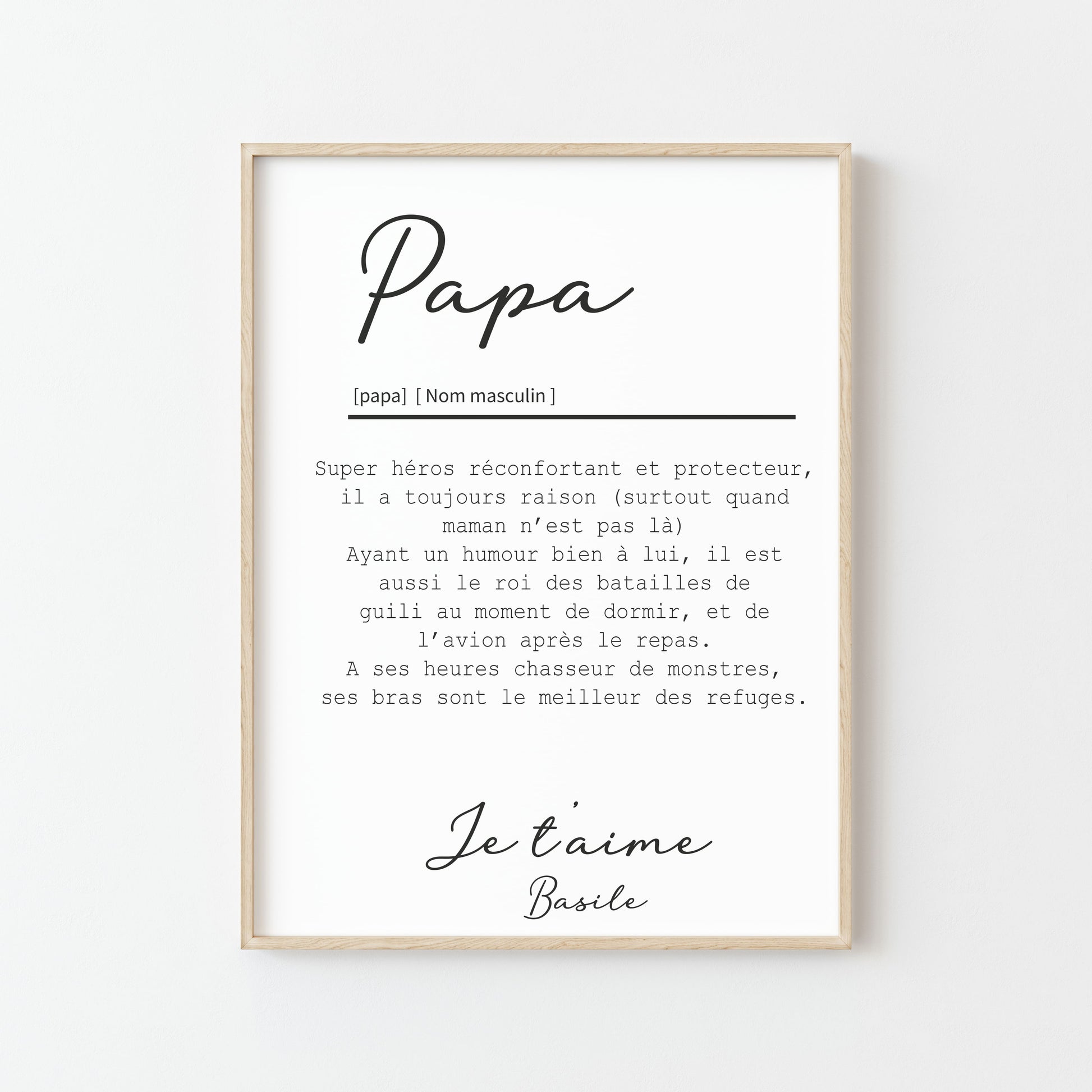 L'affiche Définition Papa est le cadeau parfait pour la fête des pères ou toute autre occasion spéciale. Exprimez votre amour et votre admiration pour votre papa avec cette affiche personnalisée à vos prénoms, qui saura toucher son cœur et décorer son espace préféré avec élégance.