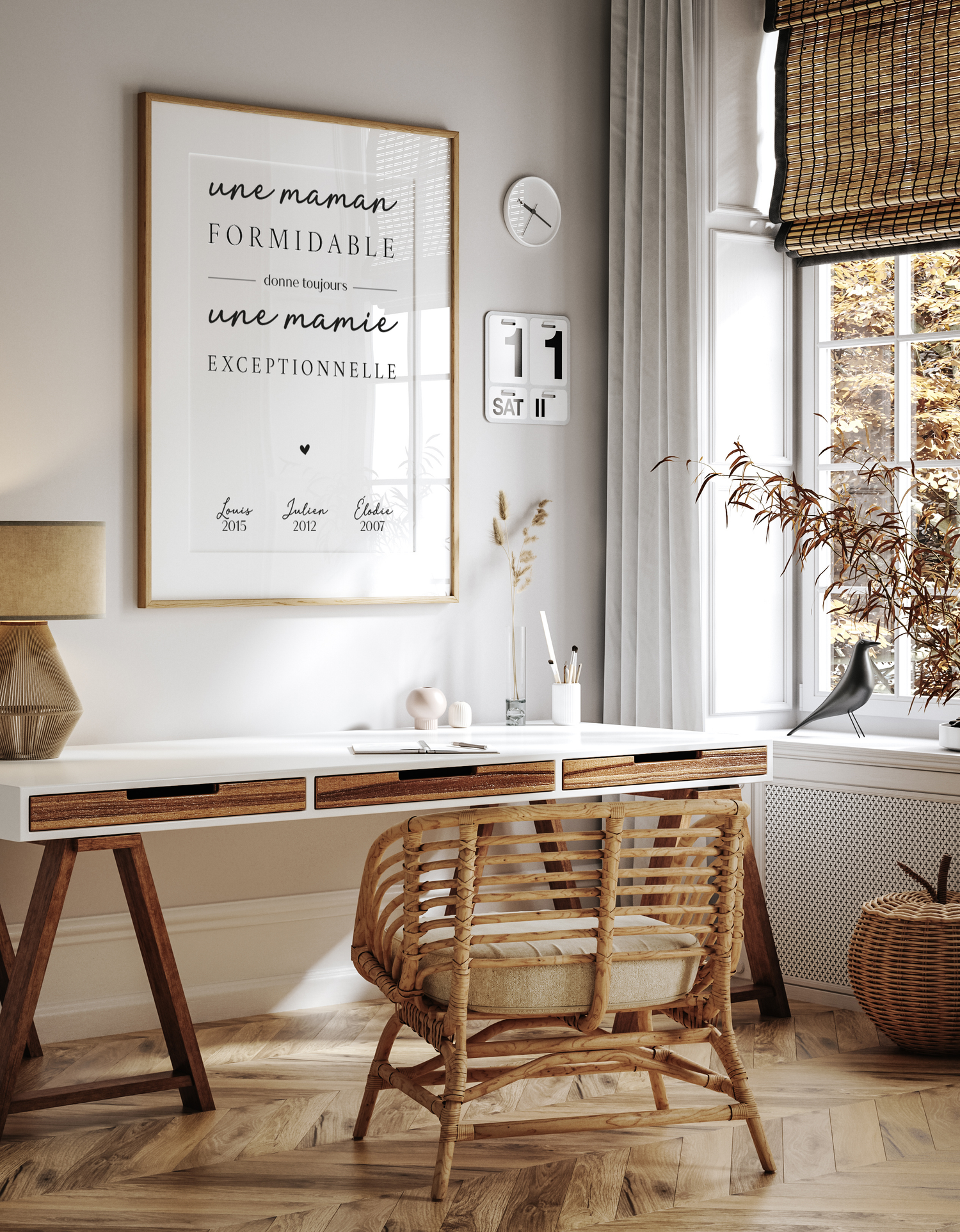 AFFICHE PERSONNALISEE "UNE MAMAN FORMIDABLE DONNE TOUJOURS UNE MAMIE EXCEPTIONNELLE"