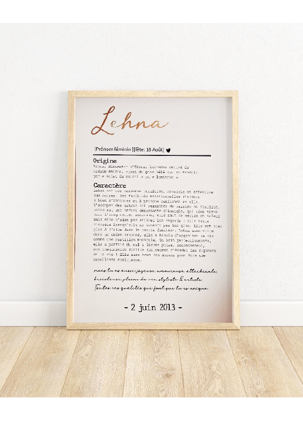 Personnalisable ✨AFFICHE SIGNIFICATION PRENOM avec ou sans touche métallisée ( Rose Gold ou Doré )